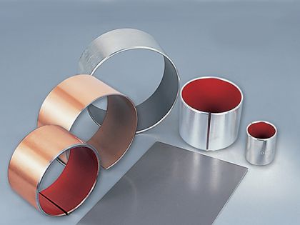 SF-1系列金屬?gòu)?fù)合無(wú)油潤(rùn)滑軸承是以優(yōu)質(zhì)低碳鋼為基板,中間燒結(jié)球形多孔青銅粉層,表面軋制PTFE為主的潤(rùn)滑材料,后經(jīng)卷制加工而成。這種軸承具有優(yōu)異的潤(rùn)滑性和良好的承載能力,中間銅粉層提高了塑料層與基板的結(jié)合強(qiáng)度,同時(shí)也及時(shí)傳遞了軸承運(yùn)行過(guò)程中產(chǎn)生的熱量。根據(jù)各種不同的使用要求我們相續(xù)開(kāi)發(fā)了多種材料來(lái)滿足各種不同的使用條件。 SF-2系列金屬?gòu)?fù)合邊界潤(rùn)滑軸承是以優(yōu)質(zhì)低碳鋼為基板,中間燒結(jié)球形多孔青銅粉層,表面軋制改性聚甲醛(POM)為主的潤(rùn)滑材料,并設(shè)有儲(chǔ)油坑。它能夠有效提高儲(chǔ)油量減少加油頻次,同時(shí)還可以埋沒(méi)外部入侵的粉塵,延長(zhǎng)軸承的使用壽命。中間的銅粉層提高了塑料層與基板的結(jié)合強(qiáng)度,同時(shí)也及時(shí)傳遞了軸承運(yùn)行過(guò)程中產(chǎn)生的熱量。該軸承適用于油脂潤(rùn)滑工況。
